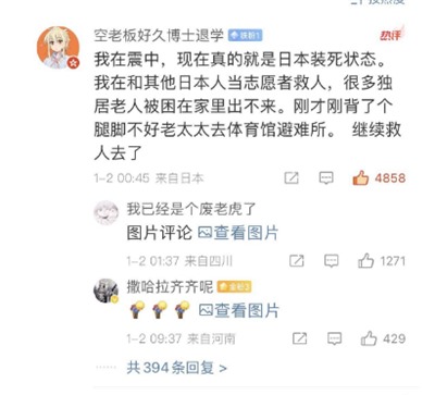 为什么说要等几天才能谈呢?大家都知道,日本是一个特别擅长粉饰太平的国家,而我国媒体还很吃这一套。所以,我们在第一时间看到的,往往是各种丧事喜办的捷报。这哪里是遭灾了,分明是老天爷给日本人民露脸的机会。