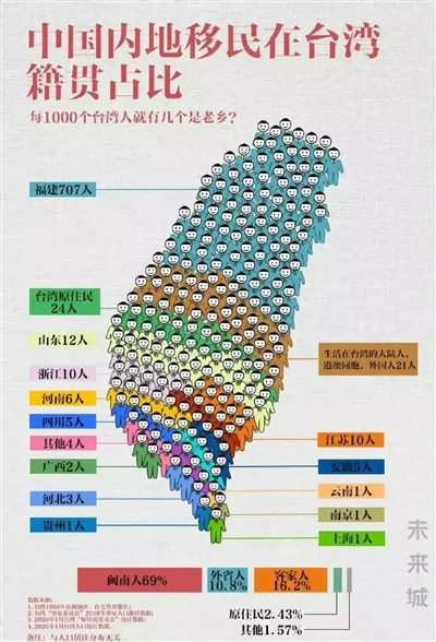 这里普及几个概念,台湾本省人并不是自古以来在台湾生活的人。“自古以来”的台湾人叫原住民,由十几个部落组成,我们统一叫他们“高山族”,是我国56个少数民族之一,总人口大概占台湾省总人口的2%。