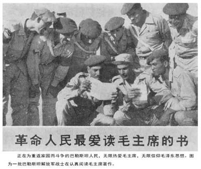 一批巴勒斯坦解放军战士在认真阅读毛主席著作