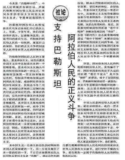 当时《人民日报》支持巴勒斯坦民族运动的相关社论 | 图片来源:1966年5月15日《人民日报》