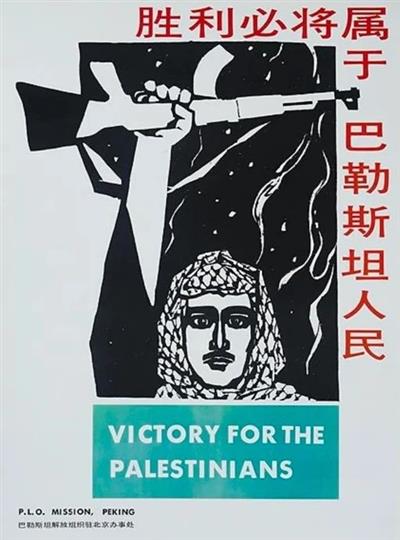 1974年,巴勒斯坦解放组织驻北京办事处关于“胜利必将属于巴勒斯坦人民”的海报 | 图片来源:网络