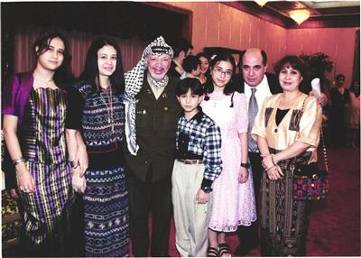 阿拉法特(左三)与穆斯塔法·萨法日尼(右二)一家 | 图片来源:wx.ihwrm.com