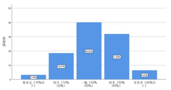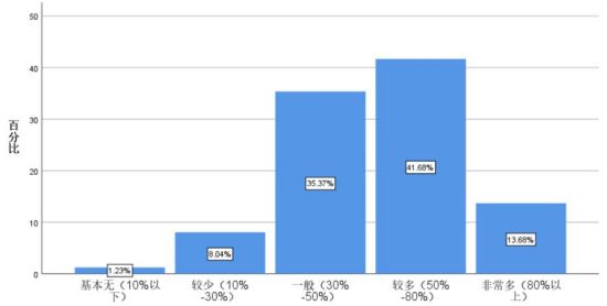 农民生活的城镇化程度正在快速推进,越来越多的农民进城买房,同时具备城市生活必备的交通工具。调查结果显示,网民反应本村农民在县城买房比较多和非常多的村庄占比接近38%,还有40%的村庄农民进城买房的占比在30%-50%之间。同时,有55%的网民反应本村村民购买小汽车的占比在50%以上。有车有房是城市化生活方式的两个基本条件,如果从这些基本的硬件来看,当前农民城镇化程度已经不低了。