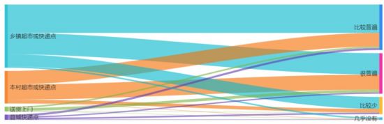 图10 村落快递点的个数与网络购物的流行程度的桑基图