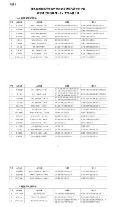 转基因大豆方面,大北农脉育4003、中国农科院中联豆5046和中联豆6024则通过初审。