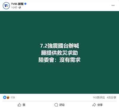 虽说碰到这样的灾难善良的人们也不会因为对岸的奇葩们而不予同情,但总是热脸贴冷屁股想必正常人多少都会产生不快。更何况,台当局的过往种种,可不仅是“不领情”而已。