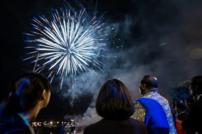 ▲2018年4月,蔡英文出席斯威士兰国王生日宴并观看烟火表演。