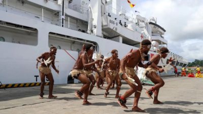 ▲2023年8月,中国海军“和平方舟”号医院船抵达所罗门群岛首都霍尼亚拉,受到当地群众热烈欢迎。