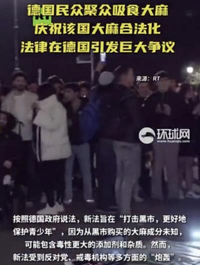 4月1日,德国《大麻法案》正式生效,德国成年人被允许合法持有和在家种植一定数量的非医用大麻,大量的年轻人聚集狂欢,庆祝大麻合法化。