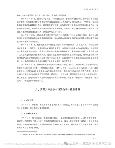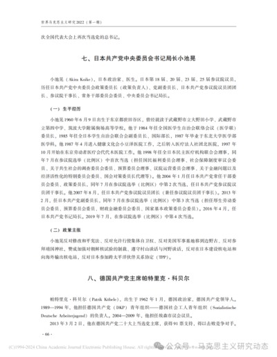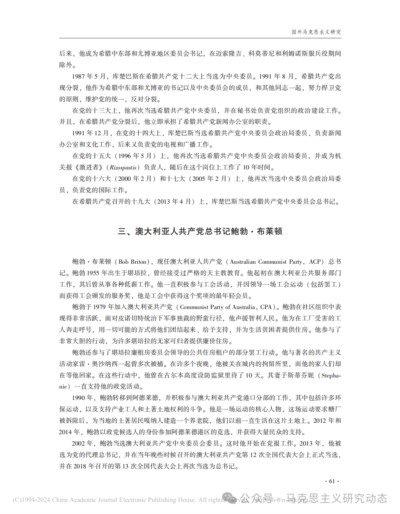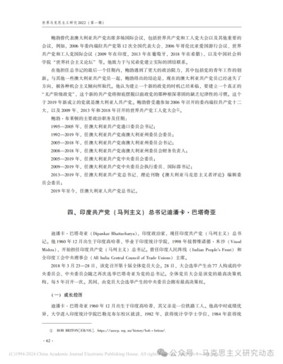本文选取当前世界共产党领导人中的 15 位代表人物, 将他们的个人成长和政治活动的基本情况进行简要梳理, 力图展现低潮期的各国共产党领导人在艰苦探索、砥砺前行中寻求变革资本主义制度、 追求共产主义理想的光辉形象。