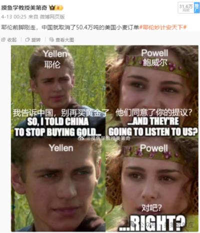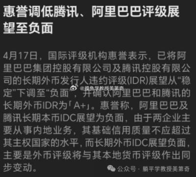 结果就是,堂堂之阵搞市场竞争,西方人落入下风,只能靠歪门邪道的盘外招。耶伦奶奶来中国化缘失败之后,颇有点气急败坏。回国之后连续三天:第一天降中国的评级,第二天降国有六大行的评级,第三天降龙头企业的评级,颇有点失态了。倒是人家这评级机构,令行禁止,如臂使指,真是讲政治的好单位。咱们的金融企业,有哪个这么讲政治的?
