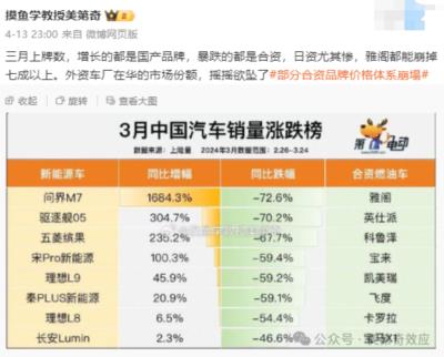 从电视到汽车,都在重复这个套路,原本看起来不可动摇的外资品牌,一旦国产品牌到达一个临界点,往往突然就会坠落谷底。唯一例外的是手机,苹果曾经在2019年前后出现了被华为打落王座的迹象,但随后的华为全面制裁救了苹果一命。但这唯一的例外现在看起来也像是昙花一现的回光返照。