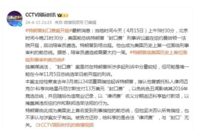 中东问题纷纷扰扰,俄乌战争局势动荡,但对绝大多数美国媒体而言,这几天关注的问题只有一个,那就是特朗普接受刑事审判。