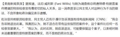 负责纽约封口费案和佐治亚州选举案的两名地方检察官则可称得上坚定支持民主党成员。负责佐治亚州一地区的检察官法尼·威利斯出身于黑豹党家庭,其父亲是黑豹党某一个派系创始人。(如果将其与种族镜像版本相比较,则类似于白人检察官出身于3K党家庭)