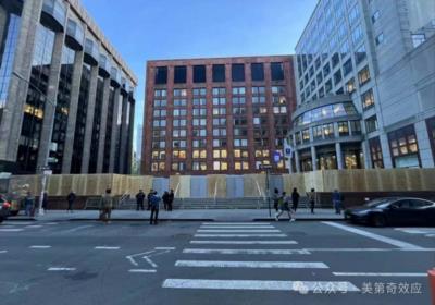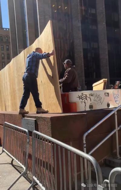 但是纽约大学当局这个做法,激怒了更多的学生,有消息称会有更多学生串联起来重新在此示威。为了以防万一,美国基建突然开始给力了。也不讨论环保批文了,也不讨论谁出钱谁受益了,也不讨论市政规划了,也不管冬眠的蛇和树上的鸟了。一夜之间,工人材料全到位,瞬间在纽约大学门口修了一堵木墙。
