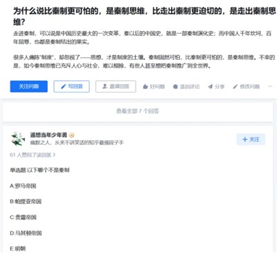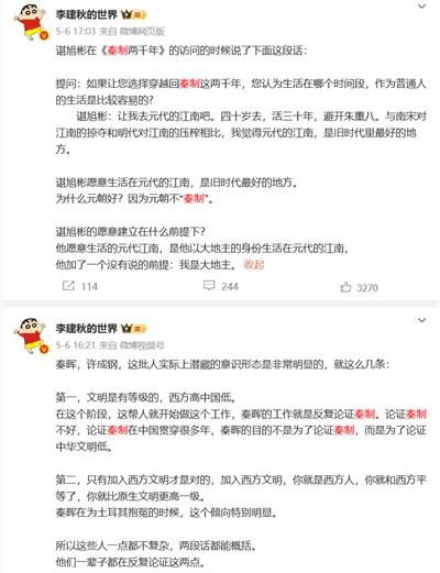 从看似公允理性的学术圈,到好像头头是道的财经圈,再到网络舆论上的影射史学家,渲染秦制之恶的人本质上是一路货色。