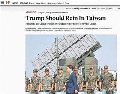 台湾普遍讨论最多的,是520前夕《外交政策》(FOREIGN POLICY)刊出的文章,标题直接呼吁川普“管控”台湾(Trump Should Rein In Taiwan)。这个rein相当形象,指的是勒住牲畜的缰绳,要你赖清德往东就往东,往西就往西,现在勒令你低调,你就别想乱闯。