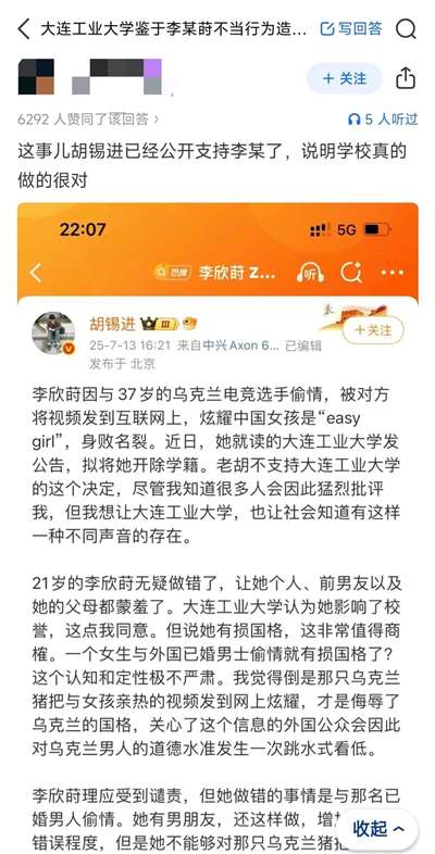 事件的起因,是2024年12月,李某在上海与乌克兰籍电竞选手Zeus发生关系,相关不雅视频后被男方在私人粉丝群中传播。随着视频的扩散,李某遭遇网络暴力与隐私曝光,私生活被无限放大与道德审判;而涉事男方则在境外回应,强调“尊重中国文化”“没有结婚”,并否认“Chinese girls are easy”等言论。与此同时,学校启动了严厉的处分程序,最终李某成为“影响国家形象”的唯一替罪羊。