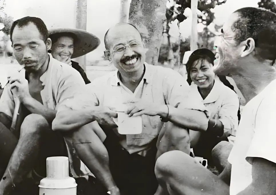 劳作中歇息时,作家柳青在田边与乡亲们聊天