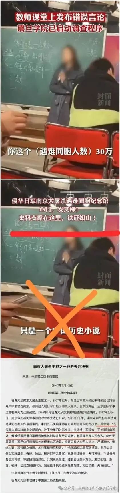 比如2014年,这位在网上传得沸沸扬扬的上海高校教师的言论:“当年的侵华日军到底在南京屠杀了多少人?30万人是没有数据支持的”“对于这段历史,如果没有史料支撑的话,那也只是民间说说而已,说的跟真的一样”“不应该永远去恨,而应当反思一下战争是怎么来的”……