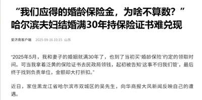 上个月底的新闻,四川省长宁县一对夫妇29年前领结婚证,被搭售养老保险,如今无法兑付,只能退还200元本金。
