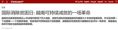 ......近年来,越南在消除饥饿和减贫方面取得的成就获得全国人民的广泛认可。国际社会则评价称,越南减贫工作是“改变社会面貌和人民生活的一场革命”。】