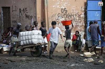 罗安达街头,一名中国商人带着几名赞比亚工人在搬运刚从中国进口的货物