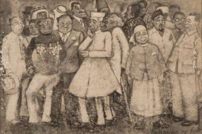 炭笔画“万隆会议”,作者奥布里·科莱特(Aubrey Collette),1955年。摄影师未知,萨普马尔基金会(Sapumal Foundation)收藏品 | 图片来源:斯里兰卡现当代艺术博物馆