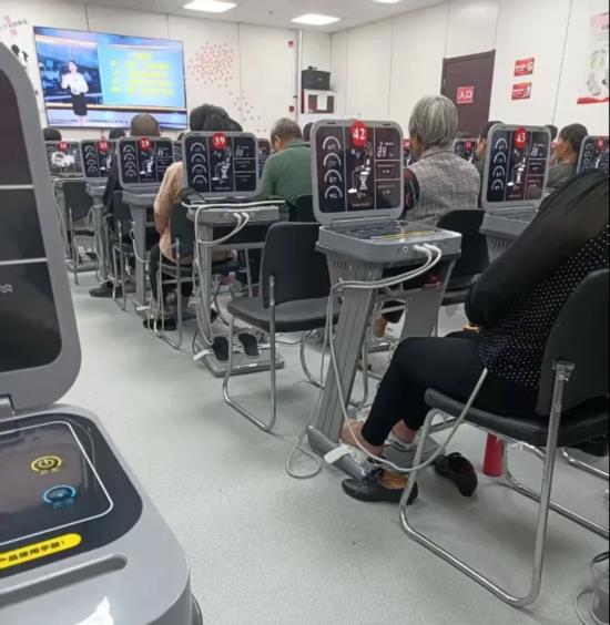 理疗店里的老人边做理疗边学习养生知识。受访者供图