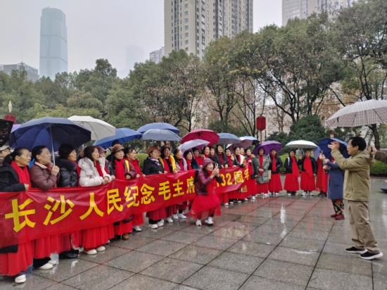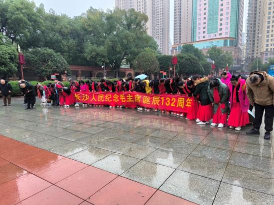 2025年12月24日,两天来的大风和降雨使长沙气温骤降,室外寒气逼人,清晨天空下起了小雨,长沙各界群众仍然齐集到清水塘毛主席塑像广场,自发举行纪念伟大领袖毛主席诞辰132周年的活动,他们说“纪念毛主席我们风雨无阻,任何困难都阻挡不了我们纪念毛主席。”