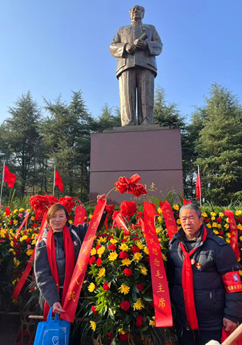 12月24日前往韶山的同志,有的是首次到韶山,有的已经连续30多年到韶山,为人民领袖毛主席敬献花篮,祝贺毛主席诞辰132周年,激动的心情溢于言表,在车上唱着《东方红》、《大海航行靠舵手》、《团结就是力量》、《社会主义好》、《映山红》、《绣红旗》等,一路欢歌到红太阳升起的地方——韶山。