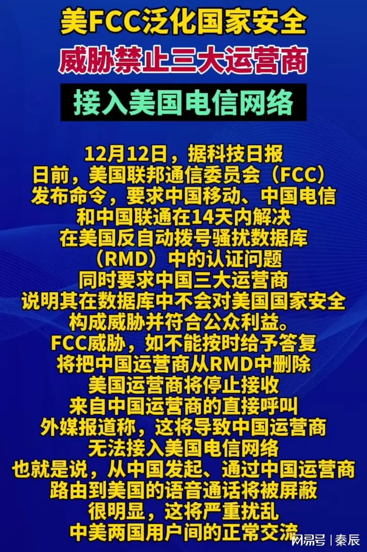 美国联邦通信委员会FCC限时令即将到期,中国三大电信运营商的最新消息来了。截至2025年12月17日,三大运营商(中国移动、中国电信、中国联通)没有对美国FCC要求发布单独的官方声明。但是通过实际行动及行业动态来看,三大运营商做了很多工作。事件起因是2025年12月8日,美国FCC对三大运营商发出了为期14天的最后通牒,最后期限为2025年12月22日。要求解决在美国反自动拨号骚扰数据库RMD中