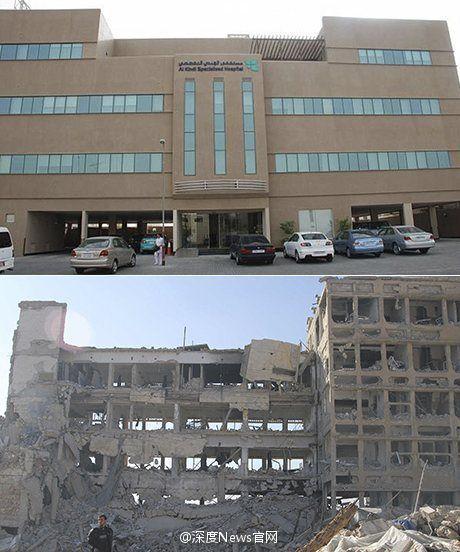 5、阿尔肯迪(Al-Kindi)医院,阿勒颇(Aleppo)。上图摄于2012年,下图摄于2013年。