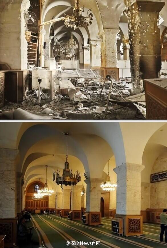 6、奥马里(Omari)清真寺,迪拉(Deraa)。上图摄于2011年,下图摄于2013年。