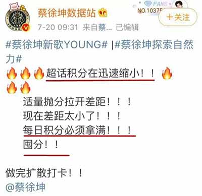 这些“事业”,已经成了他们生活的一部分,每天帮偶像刷数据,比自己的工作、学习、爱情都重要,偶像成了自己人生的寄托。甚至有人花真金白银去给偶像买粉丝、买阅读量、买点赞评论,甚至还有社群组织来监督他们完成,和完成kpi一样。这个圈子,越来越像“邪教”。