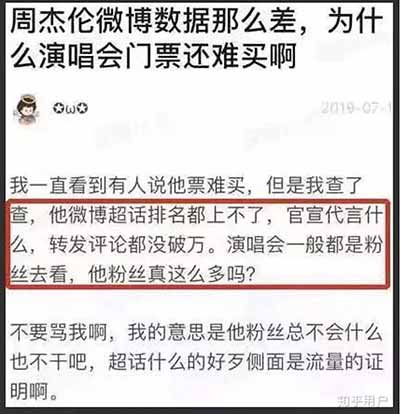 起因是豆瓣上出现了一个弱智钓鱼帖子,问:“周杰伦微博数据那么差,超话都排不上号,为啥演唱会门票那么难买?”