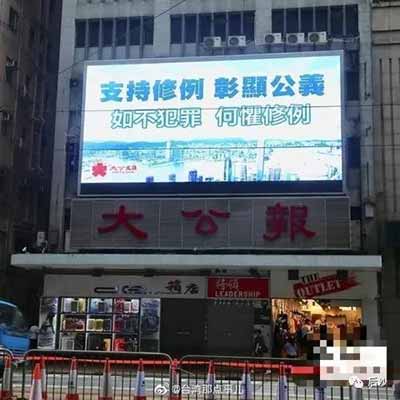 在所谓“反送中”同时,《大公报》就已受到有针对性的打压,7月中旬, 湾仔区议员杨雪盈称接“热心”市民举报,《大公报》在湾仔挂了八年的招牌和电子显示屏僭建(违建)。