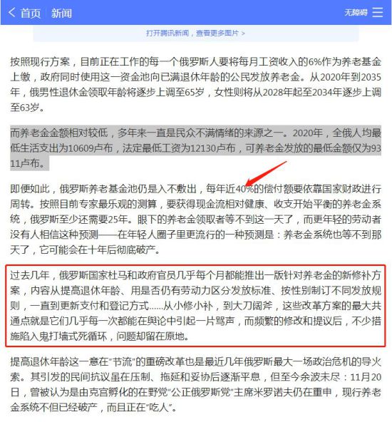 又看了另外一条关于俄罗斯养老金的新闻,当然也是特意搜索出来的: