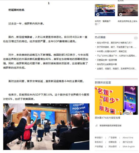 比如搜索“12月8日,普京签署了再次延长俄罗斯养老金冻结期限的总统令”,只有新民晚报有一条结果。处处关注世界其他地区负面消息的环球网和观察家网上都没有。