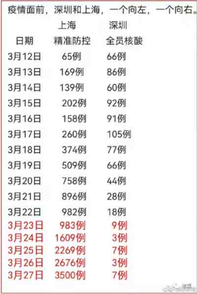 封在家里无事可做,我只能去关心上海的疫情了,有人做了下面这张表,我认为很有说服力: