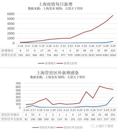 因此,3月29日上海疫情毫无意外的继续暴涨:新增确诊326例,增幅240%,而且其中291例是在管控区外;新增无症状5656例,增幅29%,其中525例在管控区外。
