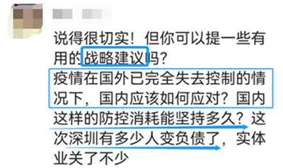 至于所谓的“战略建议”,还是免了吧,我何德何能能提什么“战略建议”。我能做的就是相信群众相信党。疫情防控最重要的就是心往一处想,劲往一处使,你一个“战略建议”,他一个“战略建议”,那听谁的?更不要说,如果是靠谱的建议还好,公知诸如“共存”之类心怀叵测的建议,在我看来,纯属妖言惑众,这种人把嘴闭上就是对抗疫最大的贡献。