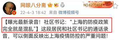 昨天晚上听到个录音,有上海市民打电话给社区防疫负责人求助,说她居住的地方有两例阳性,阳性人员暂时处于“居家隔离”状态,她反复问居委会的人什么时候能把确诊人员接走(集中隔离),她家已经两三天连门都不敢开了。本来是求助的,但社区书记还没等她说完就开启反诉苦模式,表示同情她但无能为力。