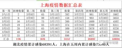 自3月1日至今,五周时间,上海累计感染者数量73540人,超过湖北自疫情爆发迄今累计感染的68391人。