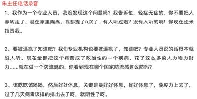 朱主任抱怨的某些情况当然是有目共睹的:如“健康云不可信,阳性也绿码,是否为阳要疾控的电话通知”,又如“医疗资源已经非常紧张120也派不出去”,前者是朱主任亲历的,后者是很多自媒体都在反映的,朱主任大多也是听来的,不仅朱主任听说了,全国民众都听说了。
