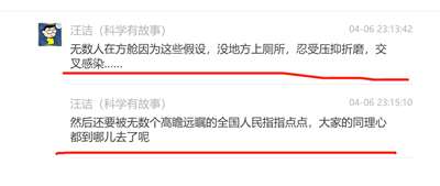 汪诘摆出一副深知内幕消息的样子,装模作样说他“不敢说,怕传谣”,实际上他已经在造谣传谣了,面对疫情,政府的态度从未变过,你们公然宣传“10天不检测数据就会下降”,不是造谣传谣是什么?