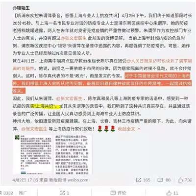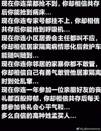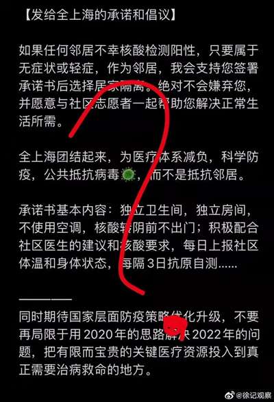 同样耐人寻味的是,将这称之为某地“共识”的那位作家写下了一句意味深长的话:“对于中国最接近现代文明的XX市民,我们相信XX人会听从他的见解,能展现自尊自律并彼此信任的市民精神,一起渡过抗.yi难关。”