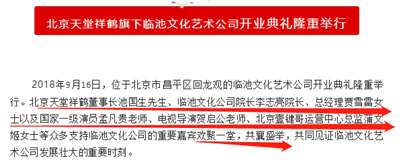 有诸多客户来源,该公司的生意风生水起,想必资本积累异常迅速,董事长在2018年进军文化艺术领域,成立了临池文化艺术公司。是的,你没看错,而且这家临池文化艺术公司还是天堂翔鹤旗下的。殡仪公司旗下的文化公司,还真是刷新了我的认识。