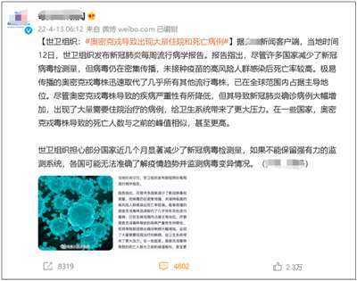 有官媒引用了世卫组织的这份报告称“尽管奥密克戎导致的疾病严重性有所降低,但其导致确诊病例大幅增加,出现了大量需要住院治疗的病例,给卫生系统带来更大压力。在一些国家,奥密克戎导致的死亡人数与之前的峰值相似,甚至更高。”