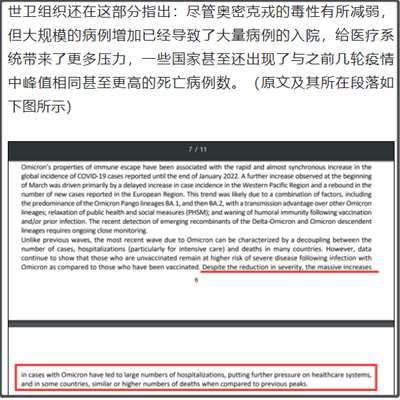 世卫组织仍然在报告里得出“在一些国家,奥密克戎导致的死亡人数与之前的峰值相似,甚至更高。”这个结论。